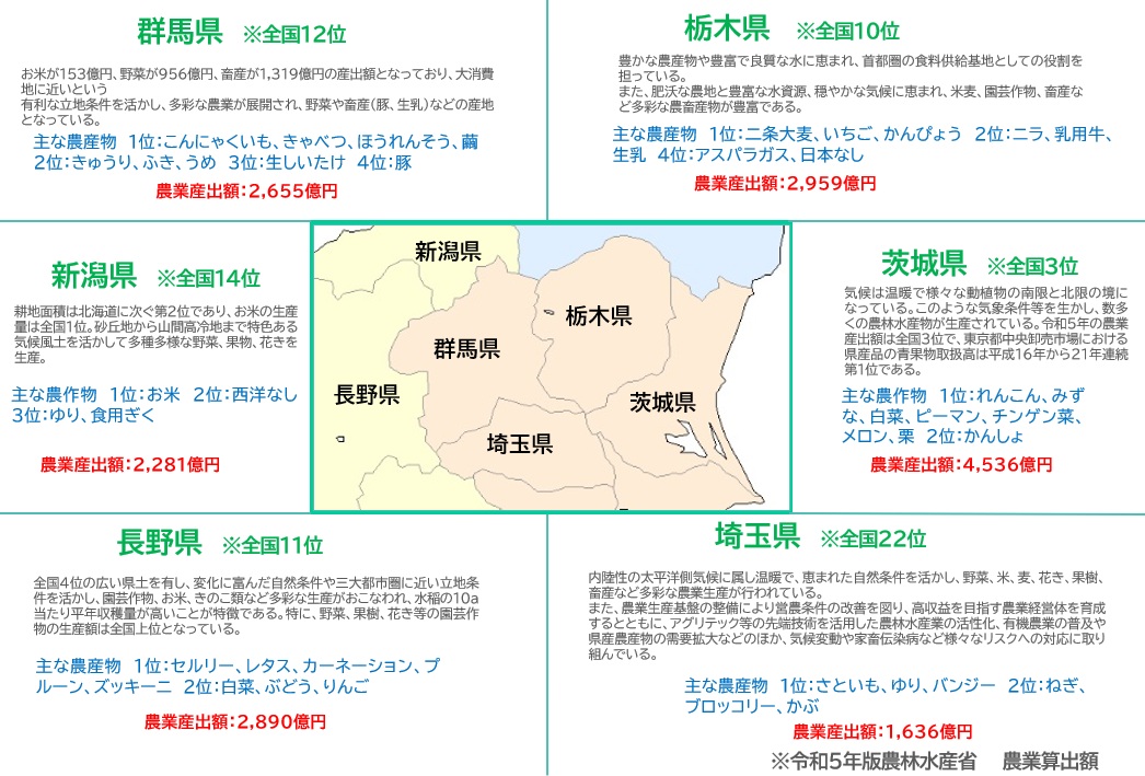 北関東・群馬県周辺エリアの農業関連の学校が日々の研究・学習の発表や、学生が育てた農作物の販売会を実施するエリア